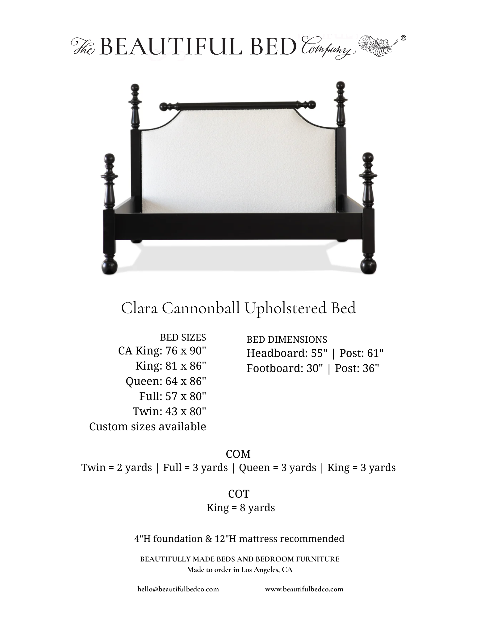 The Clara Cannonball Bed Upholstered with Low Footboard offers the same classic charm as our staple Classic Cannonball. This bed sits on darling ball turned legs with beautiful finial details. Our upholstered version evokes a unique, bold presence and the ability to blend with many different room styles. This piece is timeless in its charming design. Finish in a traditional color or wood stain or give this piece a contemporary twist by adding a custom color in our lacquer finish that compliments any fabric of your choosing.