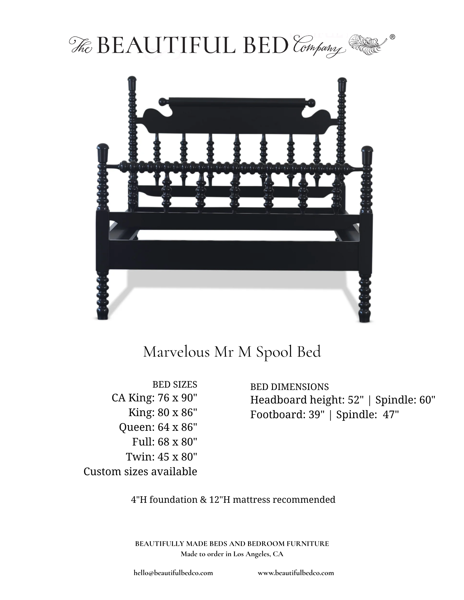 The Marvelous Mr M Spool Bed from The Beautiful Bed Company is simply WOW. This piece pays homage to American craftsmanship and peaks its cap to modern, farmhouse furniture. This bed sets us apart from other furniture makers in the USA. Our Miss Merritt in a bright, fresh lacquer color makes this piece feel vibrant and contemporary with a traditional twist.