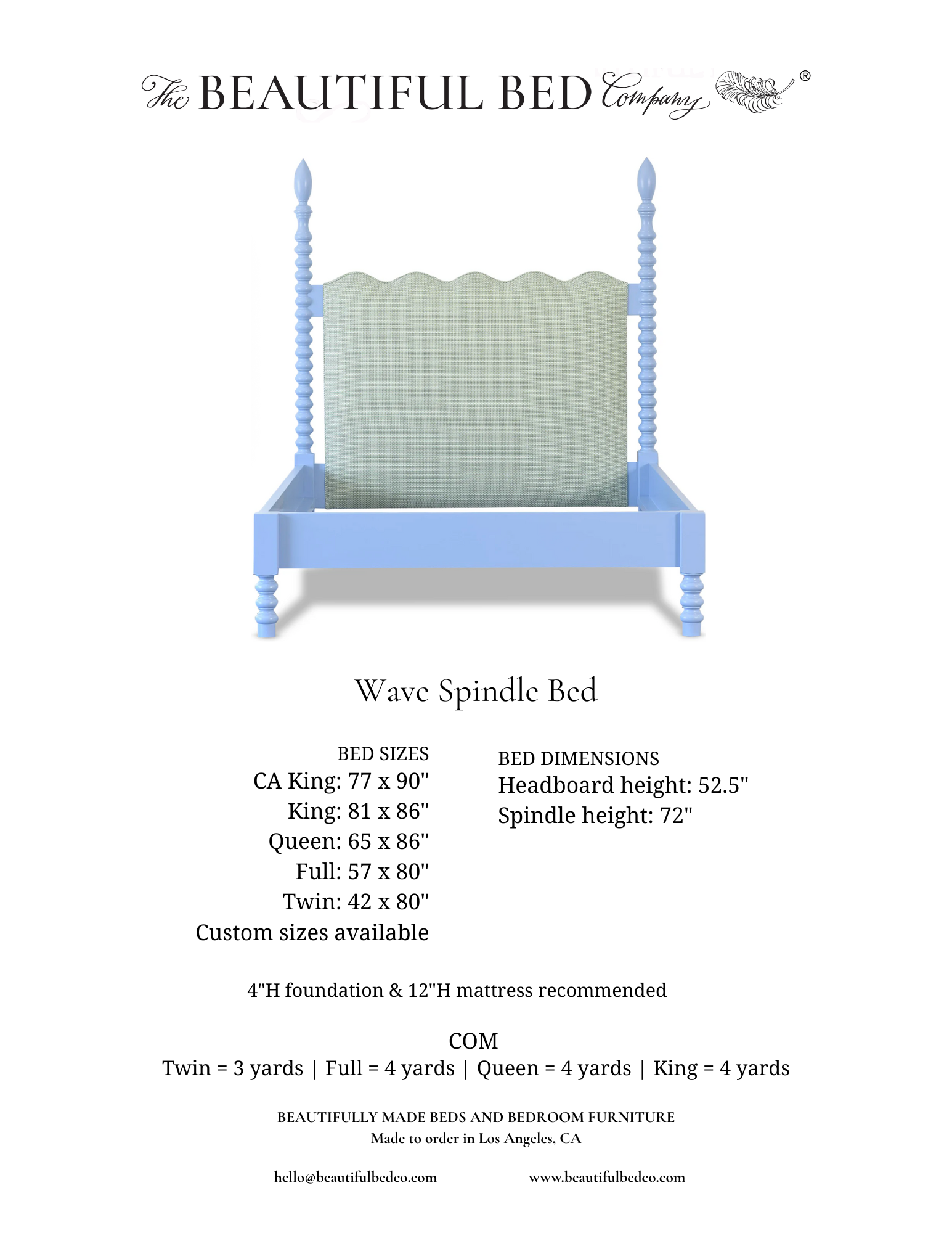 The Wave Spindle Bed from The Beautiful Bed Company is part of our classic Spindle Collection but with the playful twist of the wave pattern across the top of the headboard. Adorable as two Twins side by side or as one larger piece, this bed is one of our most fun and charming styles. Choose any fabric and paint or stain of your choice to further enhance the uniqueness and customization of this beautiful design. The Wave in a bright, fresh lacquer color makes this piece feel vibrant and contemporary with a traditional twist.