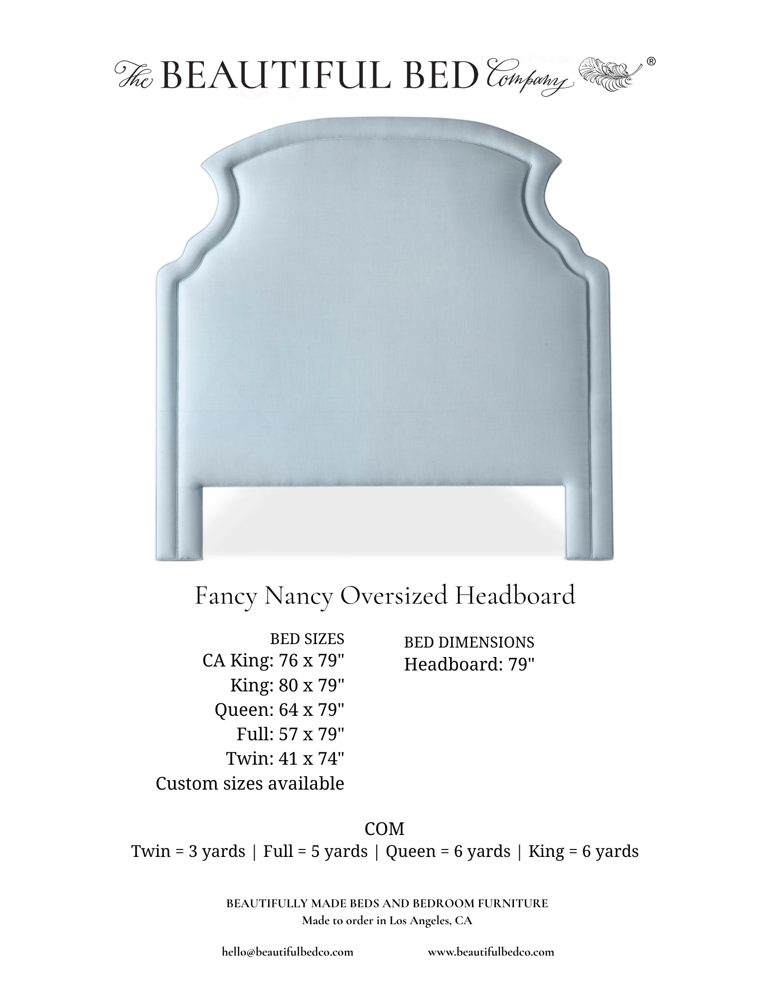 The Fancy Nancy Oversized Headboard made by The Beautiful Bed Company was inspired by the work of talented European interior designer Kit Kemp. This piece is made to the highest quality and luxury standards. An oversized headboard adds drama and provides a strong focal point in the bedroom. Upholster in colorful and textural fabrics to create a real statement piece.