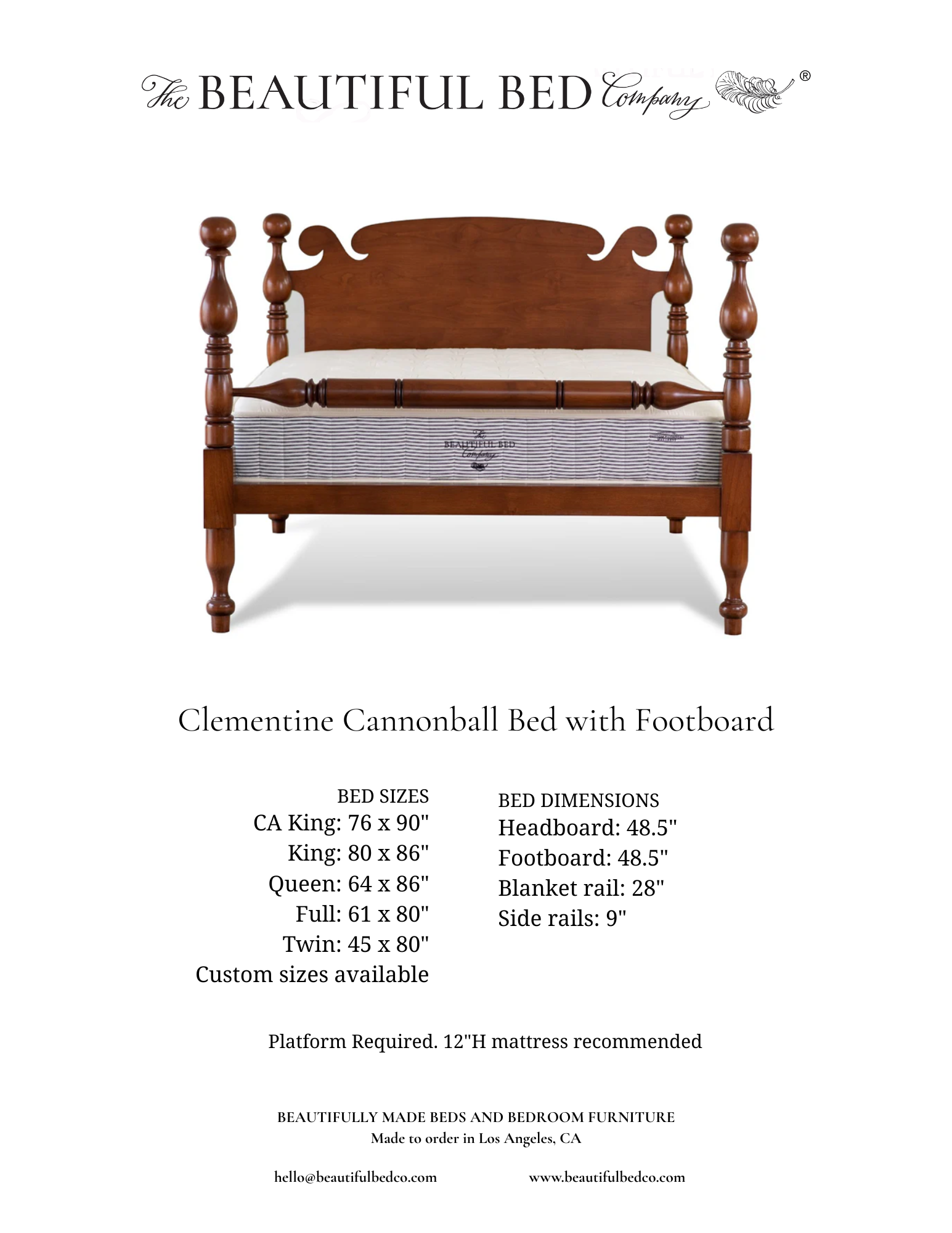 The Clementine Cannonball Bed from The Beautiful Bed Company is a real statement piece and a twist off our Classic Cannonball Bed. This piece is pure vintage inspiration and is destined to become a family heirloom. Each spindle is intricately turned by hand in our wood shop in California. Finish in a traditional color or wood stain or give this piece a contemporary twist by adding a custom color lacquer finish.