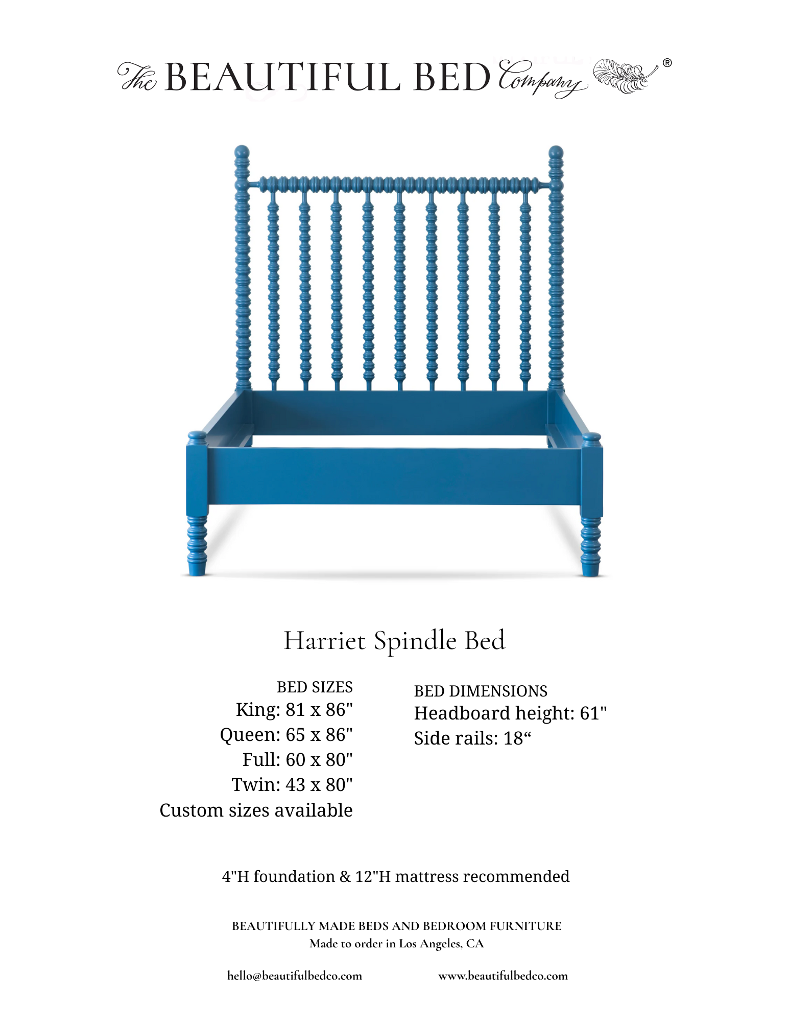 The Harriet Spindle Bed from The Beautiful Bed Company is one of our most beloved pieces. The classic, timeless spindles look stunning in any color or stain. Finish in a traditional color or wood stain or give this piece a contemporary twist by adding a fun custom color. See also our Harriett Spindle Bed with Footboard for even more spindle envy.
