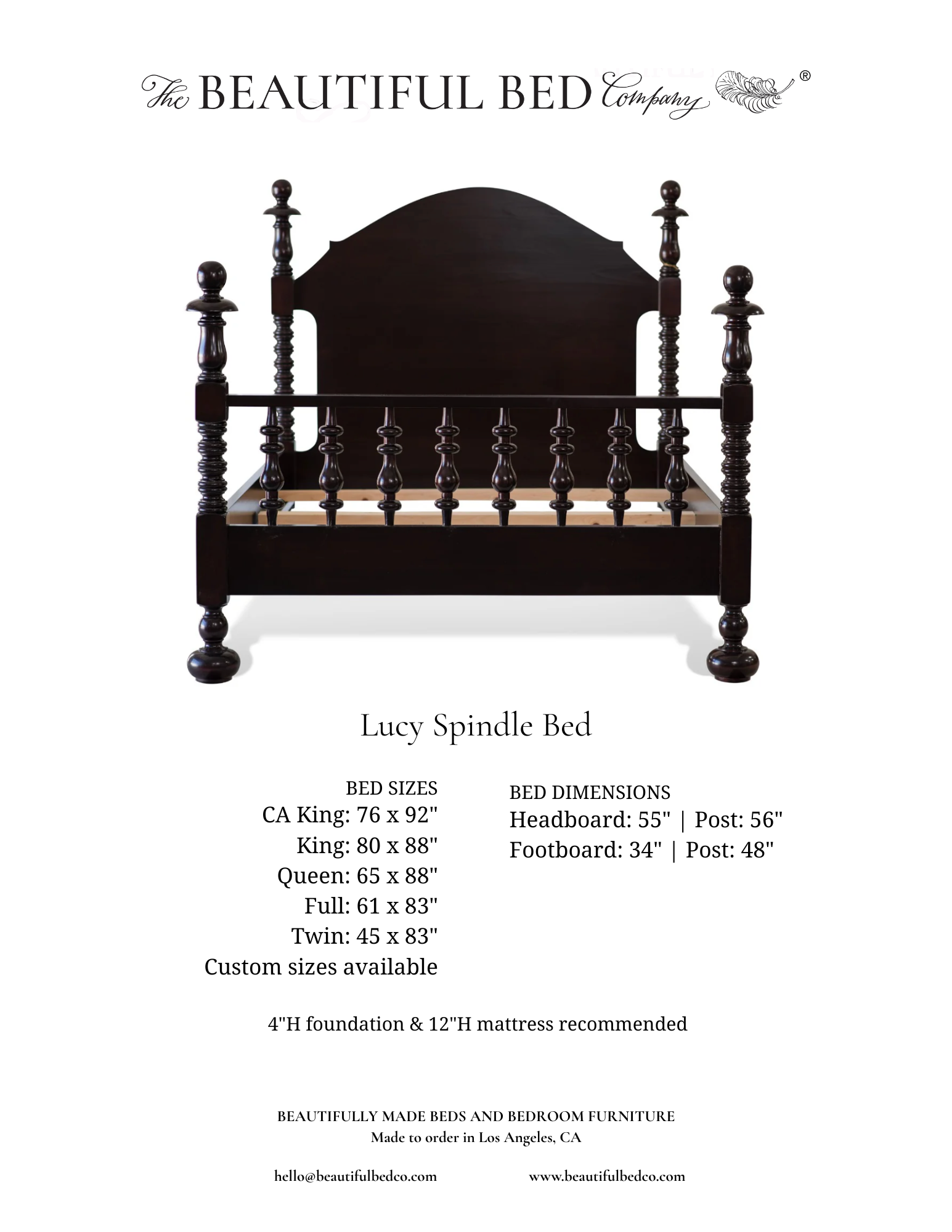 The Lucy Spindle Bed from The Beautiful Bed Company is simply WOW. This piece pays homage to American craftsmanship and peaks its cap to modern, farmhouse furniture. This bed sets us apart from other furniture makers in the USA. The headboard and footboard are testament to the talent of our artisans. Finish in a traditional color or wood stain or give this piece a contemporary twist by adding a custom color lacquer finish.